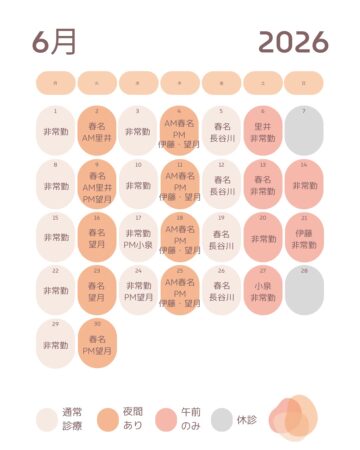 ※日曜日は月2回不定期での診療となります。祝祭日は休診です 。
