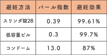 国内の臨床試験において、適切に服用した場合の避妊効果は従来の低用量ピルと同等であることが証明されています。