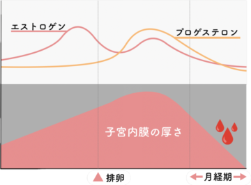 生理周期と女性ホルモンの変化は密接に関連しています。わたしたちの生理周期はおおむね1か月毎、28日周期となっておりエストロゲンとプロゲステロンそれぞれ強く影響する前半と後半に分けることができます。